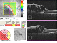 網膜疾患や緑内障の診断に用いられてきた光干渉断層計(OCT:optical coherence tomography)は、非侵襲的に網膜の断面を描出する機器でとして広く普及しています。当院では、8年前からOCTを導入し、網膜疾患と緑内障の診断と治療に活用してきました。